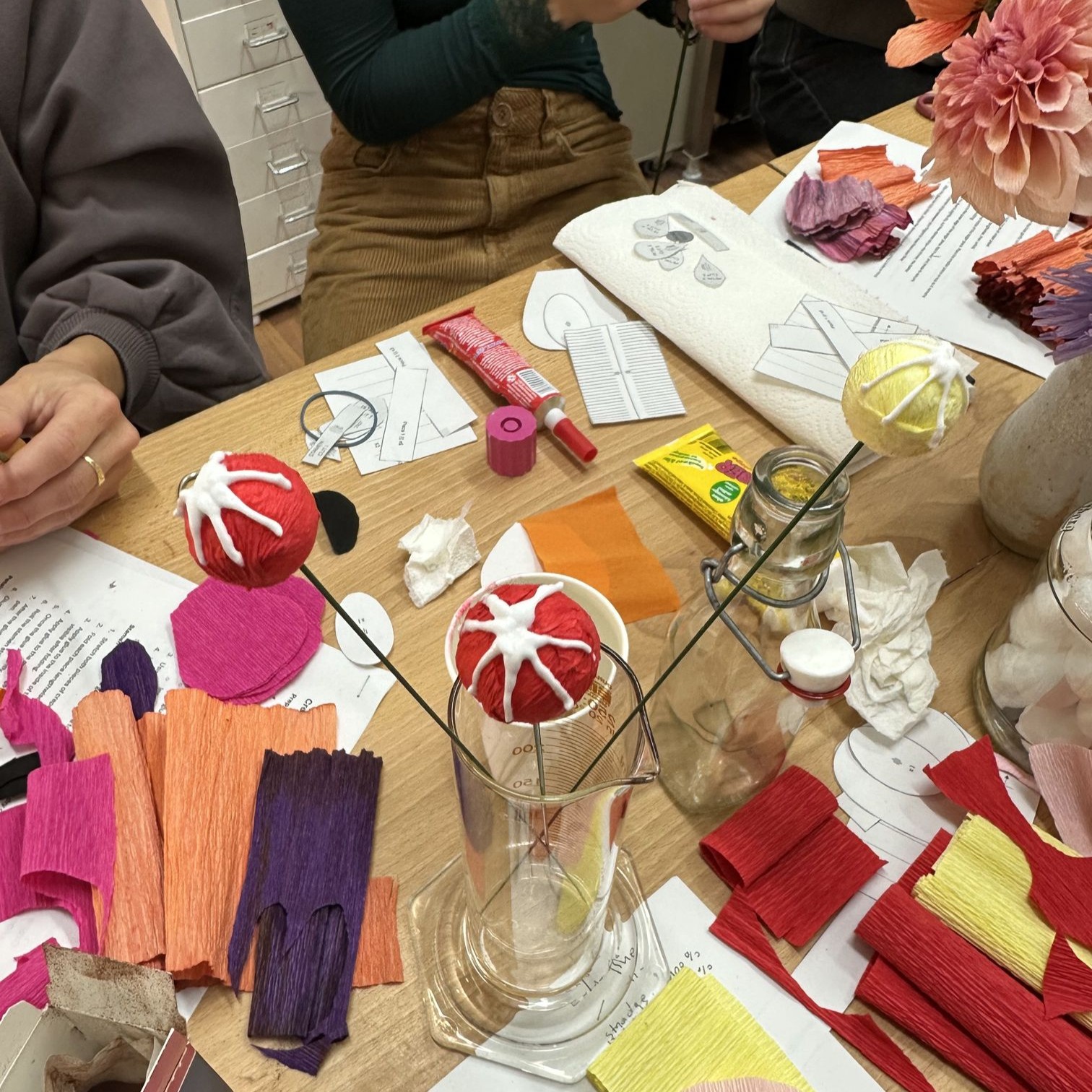 Gemeinsam schneiden, formen und gestalten wir, aus hochwertigem Krepppapier, filigrane Blüten, die Groß und Klein begeistern.